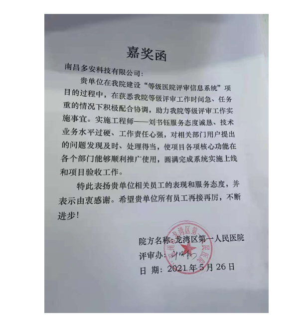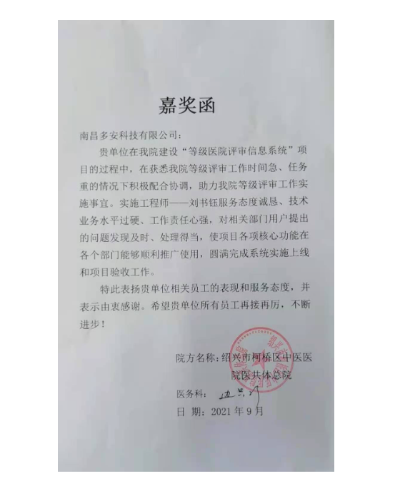 • 合作共贏!三明市第一醫(yī)院上線多安等級(jí)評(píng)審系統(tǒng)